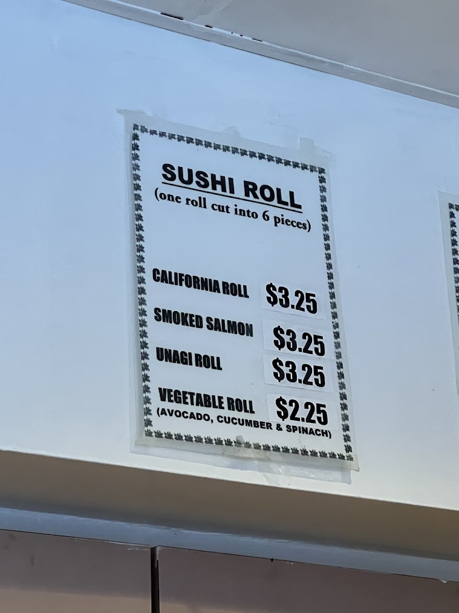 - Sushi Rolls: A selection of rolls such as California Roll, Smoked Salmon Roll, Unagi Roll, and Vegetable Roll featuring avocado, cucumber, and spinach.