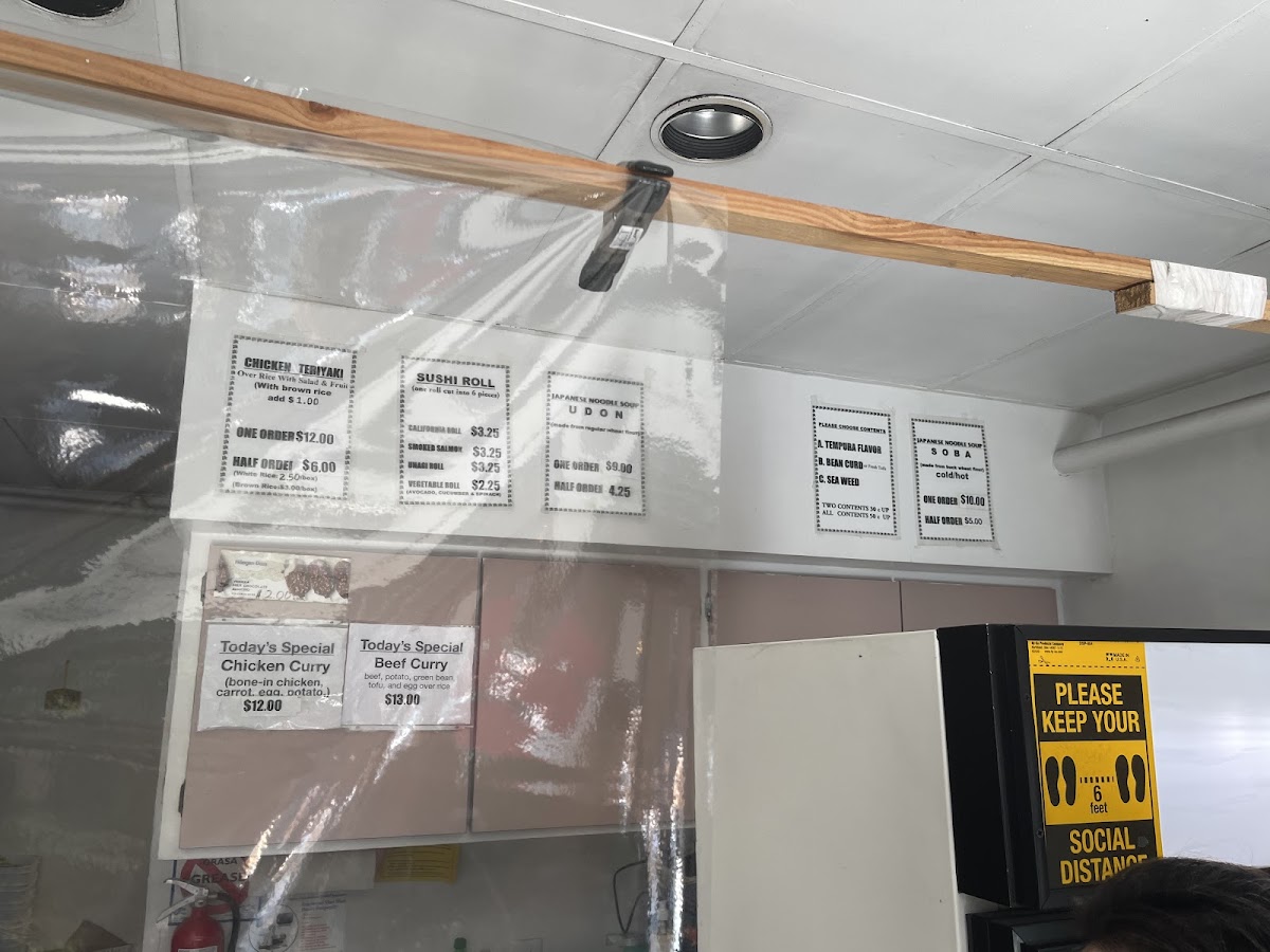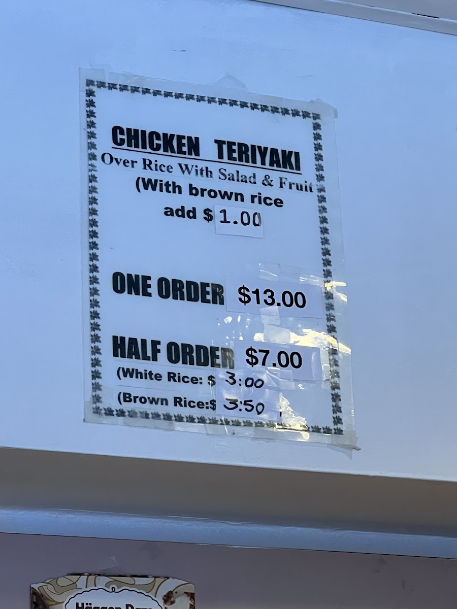 - Main Plates: Includes dishes like Chicken Teriyaki served with a choice of white or brown rice, Teriyaki Plate, Beef Curry, and Curry Beef Stew over Rice.